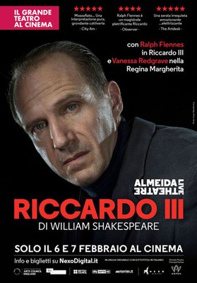 La produzione del Direttore Artistico Rupert Goold vede protagonisti Ralph Fiennes, il pluripremiato attore britannico nonché interprete shakespeariano d’eccellenza, nel malvagio più famoso del Bardo e Vanessa Redgrave nei panni della regina Margherita. Lo spettacolo è stato ripreso utilizzando numerose videocamere intorno al palcoscenico e all’intera platea, con John Wyver come produttore.